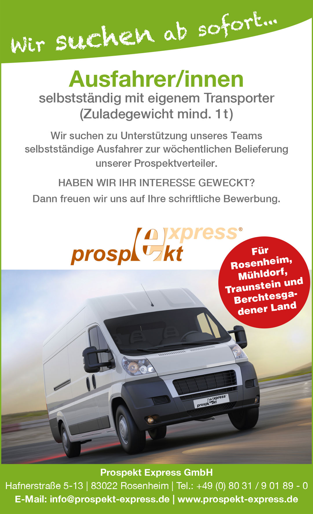Bei Interesse wenden Sie sich gerne an Dominik Narrath (Logistikleiter) unter info@prospekt-express.de oder 08031/90189-13